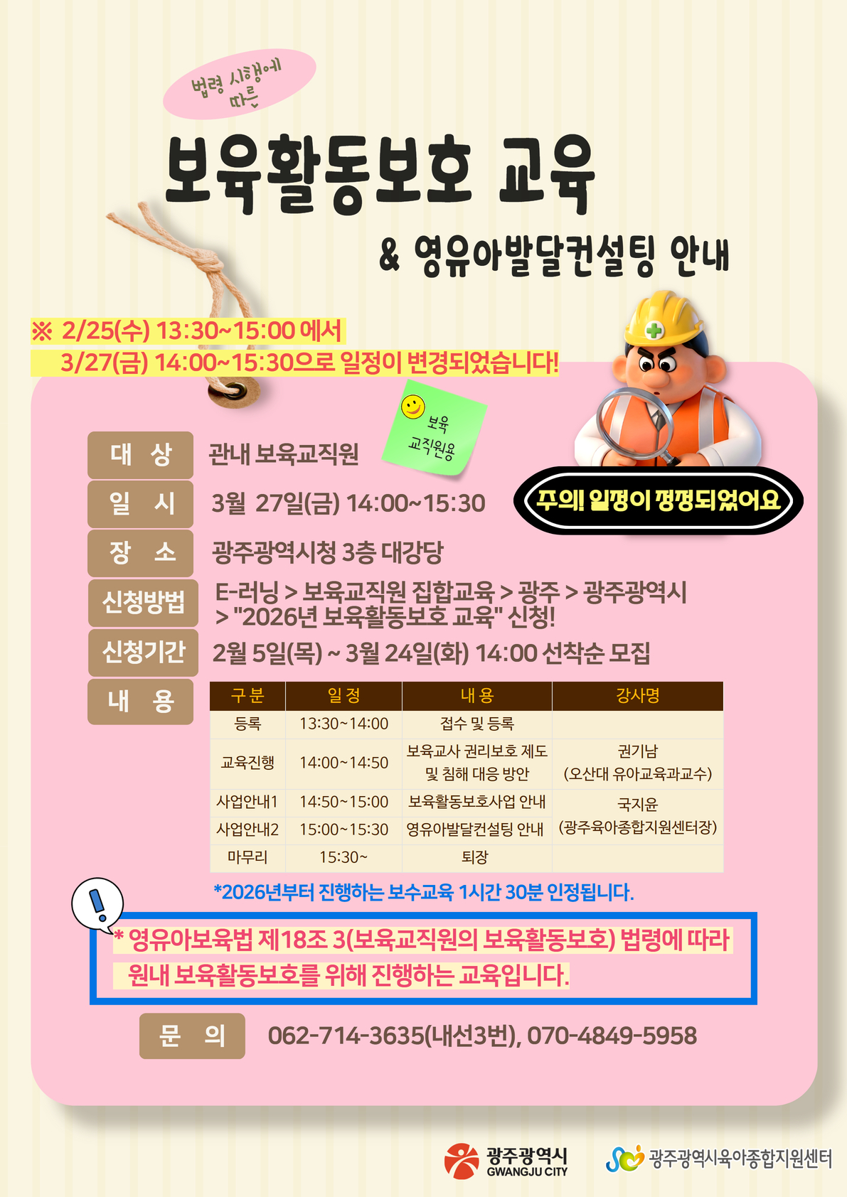 [보육활동보호] 보육활동보호 교육 ★★ 일정변경됨 확인요망!!★★