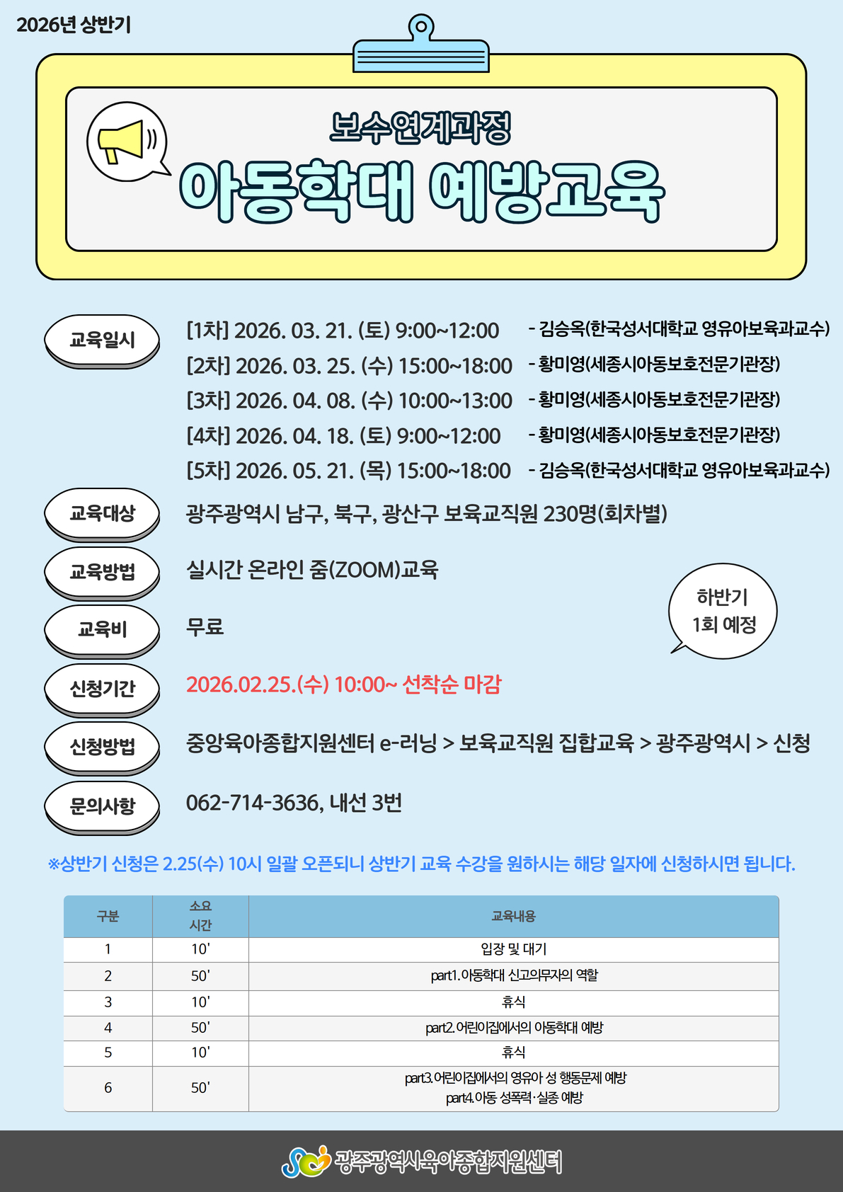 [안전및의무교육] 2026년 상반기 아동학대예방교육(보수연계과정)