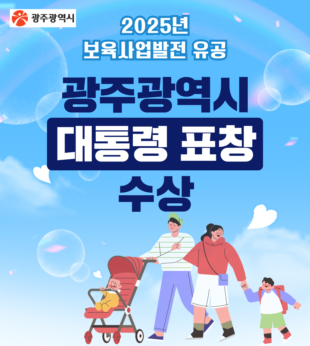 광주시, 종합·체계적 공공 보육정책 추진 ‘성과’ *출처: 진일보, 2025. 12. 3.정상아 기자 교육부 보육사업 유공 정부 포상 지자체 부분 최고상 ‘대통령 표창’ 무상보육·돌봄사각 해소 등 인정 “아이낳아 키우기 좋은 도시로” 광주광역시가 무상보육 확대, 보육의 공공성 강화, 보육교직원 처우개선 등 종합적인 보육정책 추진 성과를 인정받아 ‘대통령 표창’을 받는다. 광주시는 교육부가 주관한 ‘2025년 보육사업 발전 유공 정부 포상’ 지자체 부분 대통령 표창 대상자로 선정됐다고 2일 밝혔다. 교육부는 전국 지자체·공무원·개인 등을 대상으로 보육정책 기여도, 특수시책 개발, 보육교사 처우개선, 안전관리 성과, 제도개선 사례 등을 종합 심사해 올해 수상자를 확정했다. 광주시는 무상보육 실현을 위해 부모부담 필요경비를 지속 확대해왔다. 2023년 9월부터 5세 아동에게 월 10만원을 지원했고, 2025년 7월부터 3세 아동까지 월 5만원을 지원하면서 대상을 넓혔다. 외국인 아동에게도 동일한 지원을 적용해 포용적 보육환경을 조성했다. 돌봄 사각지대 해소를 위해 긴급아이돌봄센터 2곳을 운영하고 있으며, 올해 처음으로 영유아 발달 상담(컨설팅) 사업을 도입해 발달 지연 위험을 조기에 발견하고, 치료기관 연계를 강화했다. 광주시는 정부 보육정책과 발맞춘 보육의 공공성 강화에도 앞장섰다. 국공립어린이집 확충 정책에도 맞춰 기자재비와 공동이용시설개선비 지원을 확대해 공공보육이용률 50%를 달성했다. 유보통합에 대비해 광주시교육청과 협력체계를 강화하고, 보육 매뉴얼 공동 작성 등 현장 대응 역량도 높였다. 유보통합이란 어린이집과 유치원의 보육·교육 체계를 하나로 통합해 0~5세 모든 영유아가 이용기관에 관계없이 양질의 교육·돌봄서비스를 차별없이 받도록 하는 정책을 말한다.